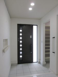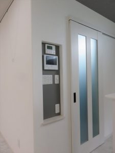 ↓ 玄関ホールと廊下の間には、引き戸を設置。